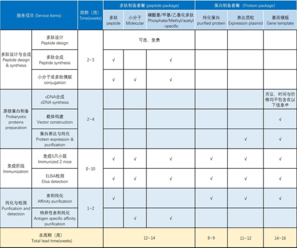 抗体制备是我司十几年磨砺打造的精品项目之-。 我们从上游的多肽设计合成/原真核蛋白表达,到下游的抗体纯化,功能验证,都能独立承担;采用公司自主研发的抗原预测软件,设计的多肽抗原产生抗体的几率达到95%,结合先进的多肽合成技术,可以为您快速地合成出纯度达85%以上的多肽抗原;我们的偶联实验操作人员,全部是有过蛋白制备类研究背景的硕士以上学历专业技术人员,保证从多种载体蛋白和多样的偶联方式中选择出最佳的偶联方案,保证偶联的多肽具备很强的免疫原性及抗原性;同时公司在国内率先引|进先进的纳米技术乳化抗原,使得抗原在体内产生更好的免疫应答反应。
