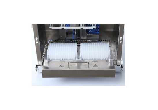 •单机操作,7英寸彩色触摸屏显示,简单易用 •根据要求自定义温度、程序,满足不同试剂要求 •操作时间短,15-30min/次,最多可同时提取20个样品 •核酸得率高,磁珠损耗少,结果重复性好 •紫外消毒功能,减少不同批次间样品的污染 •开放系统, 适用各种磁珠法提取试剂 •抽屉式进样,安全可靠,方便实验人员放置试剂盒 •将配置APP软件,可通过移动设备实时监控系统