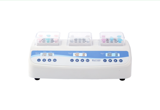 MiniT-H2C三联多用途金属浴是一款采用微电脑控制,一机三用,独立控温的多用途金属浴。买一台仪器拥有3台仪器的功能,从此酶切、固定、凝胶回收等无需等待!